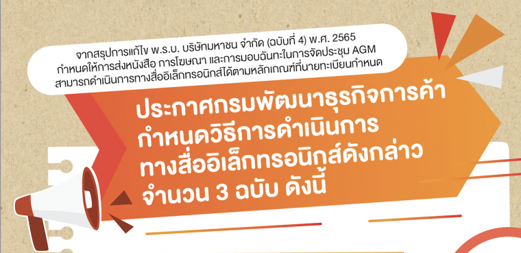 หัวข้อใหญ่ ประกาศกรมพัฒนาธุรกิจการค้า กำหนดวิธีการดำเนินการทางสื่ออิเล็กทรอนิกส์ดังกล่าว จำนวน 3 ฉบับ ดังนี้