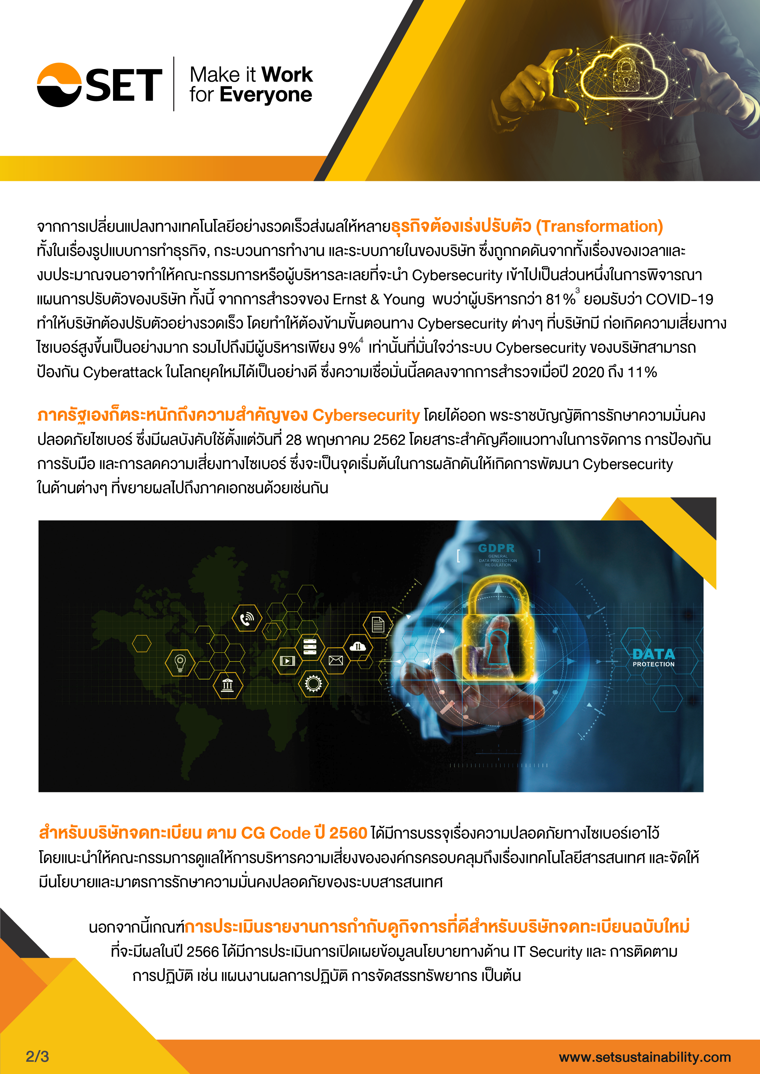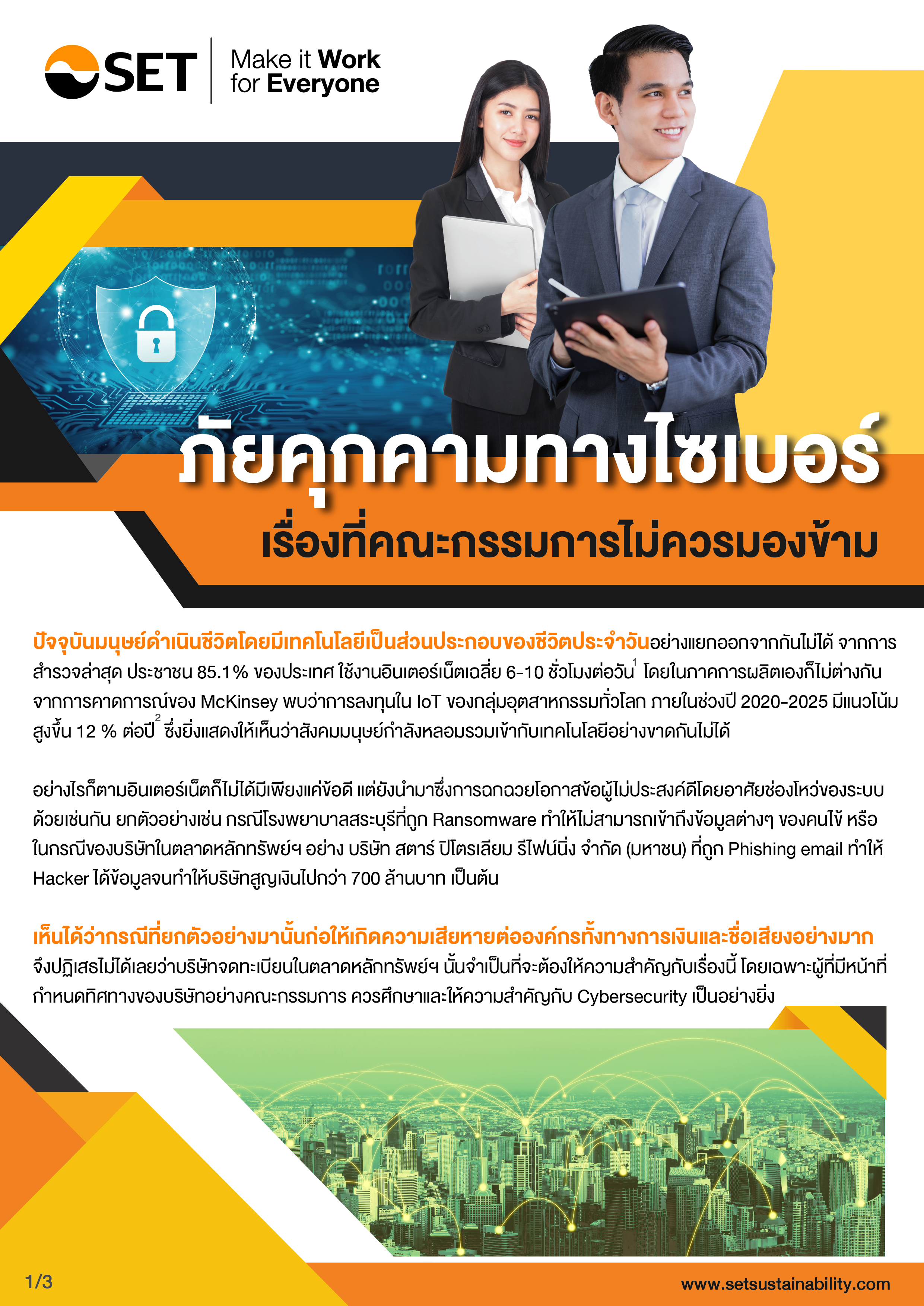 Home Knowledge Libraries Corporate Governance CG Today: Cybersecurity Topic All AGM Anti-Corruption Auditing Awards BCG Board Diversity Board Effectiveness Board Evaluation Board Meeting Board Roles & Responsibilities Board Structure Business Strategy CGR Circular Economy Climate Change Code of Conduct Corporate Efficiency Corporate Governance Corporate Secretary Corporate Sustainability Disclosure and Reporting DJSI Employee ESG Assessment ESG Integration Ethics Gender Equality GHG Emission Human Rights Innovation Internal Control Investor Relations Materiality Analysis Operational Efficiency Principle and Guidelines Risk Management SD Focus SD Professional Sharing SDGs SET ESG Ratings Shareholder Social Enterprise Social Investment Sustainability Index Sustainable Banking Sustainable Business Role Models Sustainable Consumption Sustainable Exchange Sustainable Finance Sustainable Investment Sustainable Procurement Sustainable Supply Chain THSI Training & Workshop Whistleblowing ทันกระแสธุรกิจยั่งยืน CG Today: Cybersecurity Click Download : บทความ CG Today ภัยคุกคามทางไซเบอร์ เรื่องที่คณะกรรมการไม่ควรมองข้าม