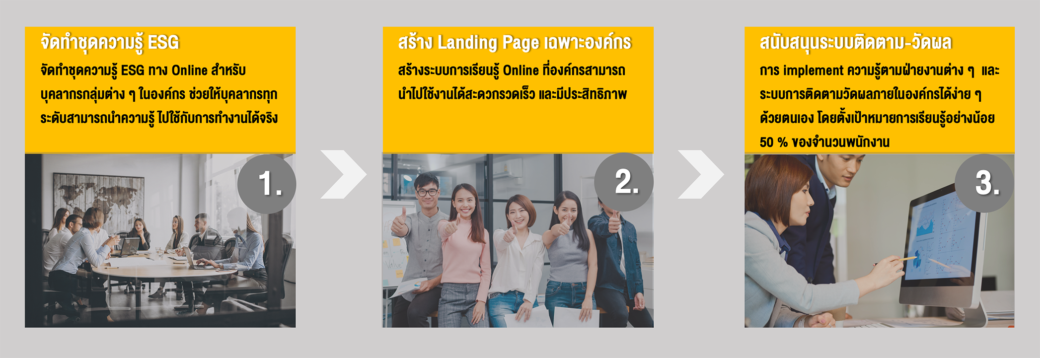 2. บริษัทต้องให้พนักงานเข้าเรียน E-Learning ชุดความรู้ ESG สำหรับพนักงานทุกคน (4 หลักสูตรภาคบังคับ)