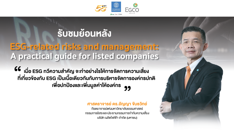 Home Knowledge Libraries Risk Management Topic All AGM Anti-Corruption Auditing Awards BCG Board Diversity Board Effectiveness Board Evaluation Board Meeting Board Roles & Responsibilities Board Structure Business Strategy CGR Circular Economy Climate Change Code of Conduct Corporate Efficiency Corporate Governance Corporate Secretary Corporate Sustainability Disclosure and Reporting DJSI Employee ESG Assessment ESG Integration Ethics Gender Equality GHG Emission Human Rights Innovation Internal Control Investor Relations Materiality Analysis Operational Efficiency Principle and Guidelines Risk Management SD Focus SD Professional Sharing SDGs SET ESG Ratings Shareholder Social Enterprise Social Investment Sustainability Index Sustainable Banking Sustainable Business Role Models Sustainable Consumption Sustainable Exchange Sustainable Finance Sustainable Investment Sustainable Procurement Sustainable Supply Chain THSI Training & Workshop Whistleblowing ทันกระแสธุรกิจยั่งยืน Risk Management Topic All AGM Anti-Corruption Auditing Awards BCG Board Diversity Board Effectiveness Board Evaluation Board Meeting Board Roles & Responsibilities Board Structure Business Strategy CGR Circular Economy Climate Change Code of Conduct Corporate Efficiency Corporate Governance Corporate Secretary Corporate Sustainability Disclosure and Reporting DJSI Employee ESG Assessment ESG Integration Ethics Gender Equality GHG Emission Human Rights Innovation Internal Control Investor Relations Materiality Analysis Operational Efficiency Principle and Guidelines Risk Management SD Focus SD Professional Sharing SDGs SET ESG Ratings Shareholder Social Enterprise Social Investment Sustainability Index Sustainable Banking Sustainable Business Role Models Sustainable Consumption Sustainable Exchange Sustainable Finance Sustainable Investment Sustainable Procurement Sustainable Supply Chain THSI Training & Workshop Whistleblowing ทันกระแสธุรกิจยั่งยืน Type All Article Book Checklist e-Learning FAQ Infographic Practical Action Research Report Report Showcase Slideshow Template Video Clip Apply Climate Risk และ Scenario Analysis: แนวทางบริหารความเสี่ยงธุรกิจไทย ทำความเข้าใจ Climate Risk (Physical & Transition) และเรียนรู้วิธีประยุกต์ใช้ Scenario Analysis เพื่อประเมินผลกระทบทางการเงินและวางกลยุทธ์สร้างความสามารถในการปรับตัวของธุรกิจ Article READ MORE ส่อง TOP 5 ความเสี่ยง ESG ของตัวอย่างบริษัทจดทะเบียน Article READ MORE ผลสำรวจความเสี่ยง HRDD ของ บจ. Article READ MORE ประเด็นความเสี่ยงสำคัญด้านสิทธิมนุษยชน 8 กลุ่มอุตสาหกรรม Infographic READ MORE เอกสารประกอบงาน ESG-related risks and management Slideshow READ MORE ESG Risk กับธุรกิจจัดการกองทุนที่ยั่งยืน Article READ MORE ‹ 1 2 3 4 5 6 7 8 ... 12 13 Next ›