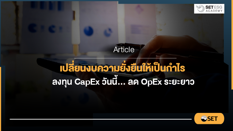 พลิกหนี้เป็นกำไรด้วย ESG...กลยุทธ์ลงทุน (CapEx) เพื่อหั่นต้นทุน (OpEx) และเข้าถึงแหล่งเงินทุนดอกเบี้ยต่ำ